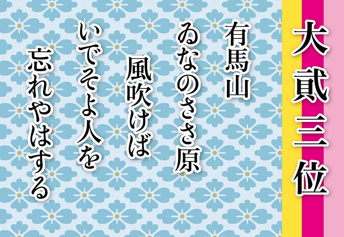 「有馬山 ゐなのささはら 風ふけば いでそよ人を 忘れやはする」(小倉百人一首58番)