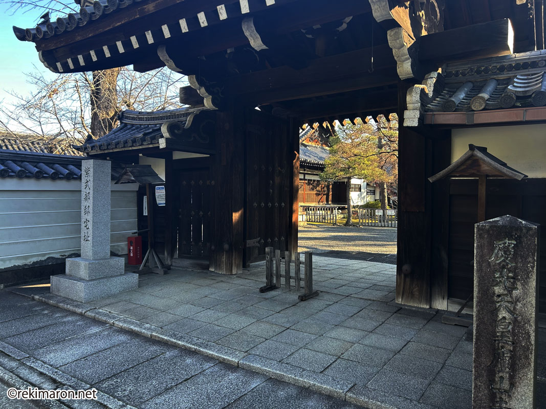 「現在の廬山寺(ろざんじ)は、豊臣秀吉の時代にこの地に移されたもので、正しくは廬山天台講寺という。もとは天慶元年(938)に慈恵大師良源(元三大師)が船岡山南麓に開いた與顔金剛院に始まる。