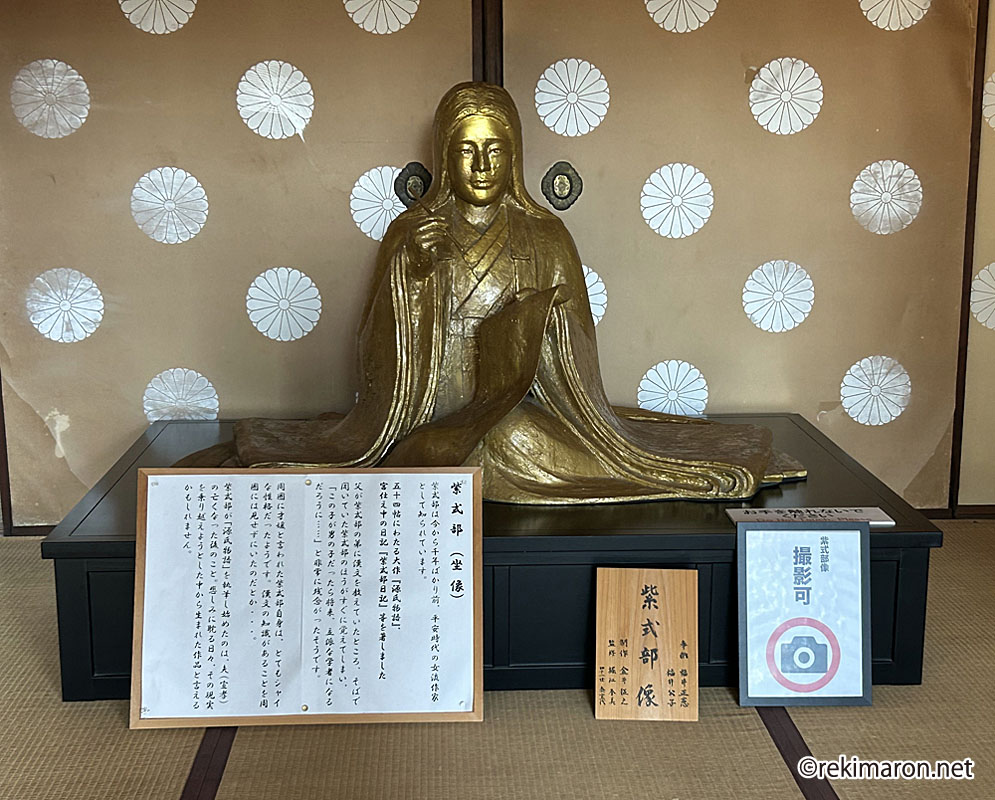 中古三十六歌仙のひとりとされ、大作『源氏物語』の他「紫式部日記」「紫式部集」といった作品がある。その文名は広く知られており、ユネスコによって世界の偉人のひとりに選定されている。