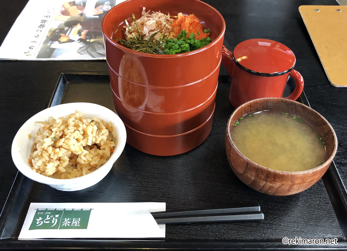 城内二ノ丸の辺りにある「ちどり茶屋」。出雲そば美味しかったですよ。お店の周辺を時々お侍様が通ったりします。